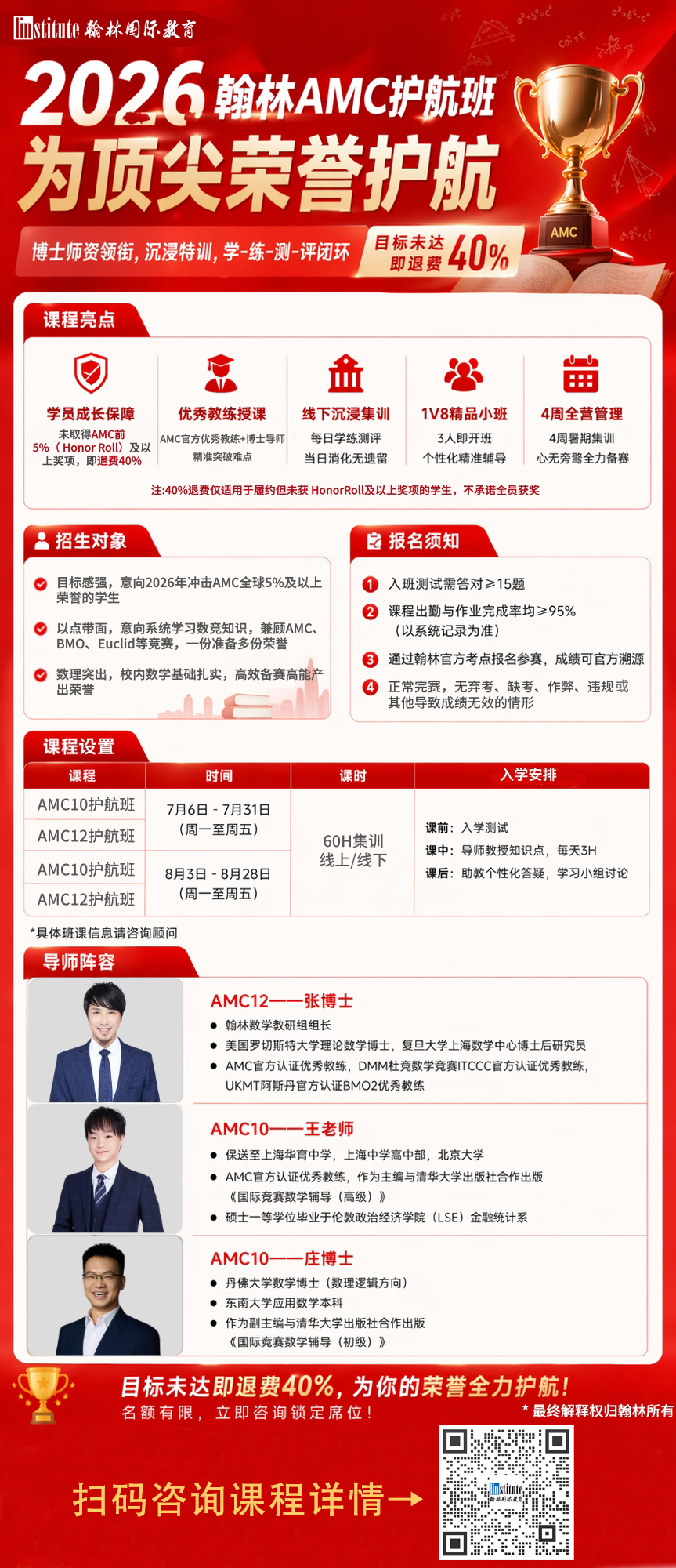 国际教育第二课堂,翰林是国内开展国际竞赛辅导、教研的教育集团。2017至今为整个国际教育行业提供国际竞赛资讯、真题、讲义等备赛资料以及为国际学校及行业培养了大量师资。